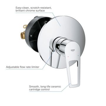 Baterie dus Grohe Plus, incastrata, crom - 24059003
